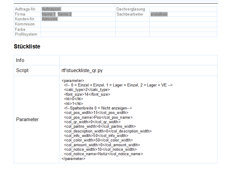 Damit das KKP weiß, dass wir bestimmte Parameter an dem Druck der Stückliste anpassen wollen müssen wir ein Parameter-Tag erstellen.